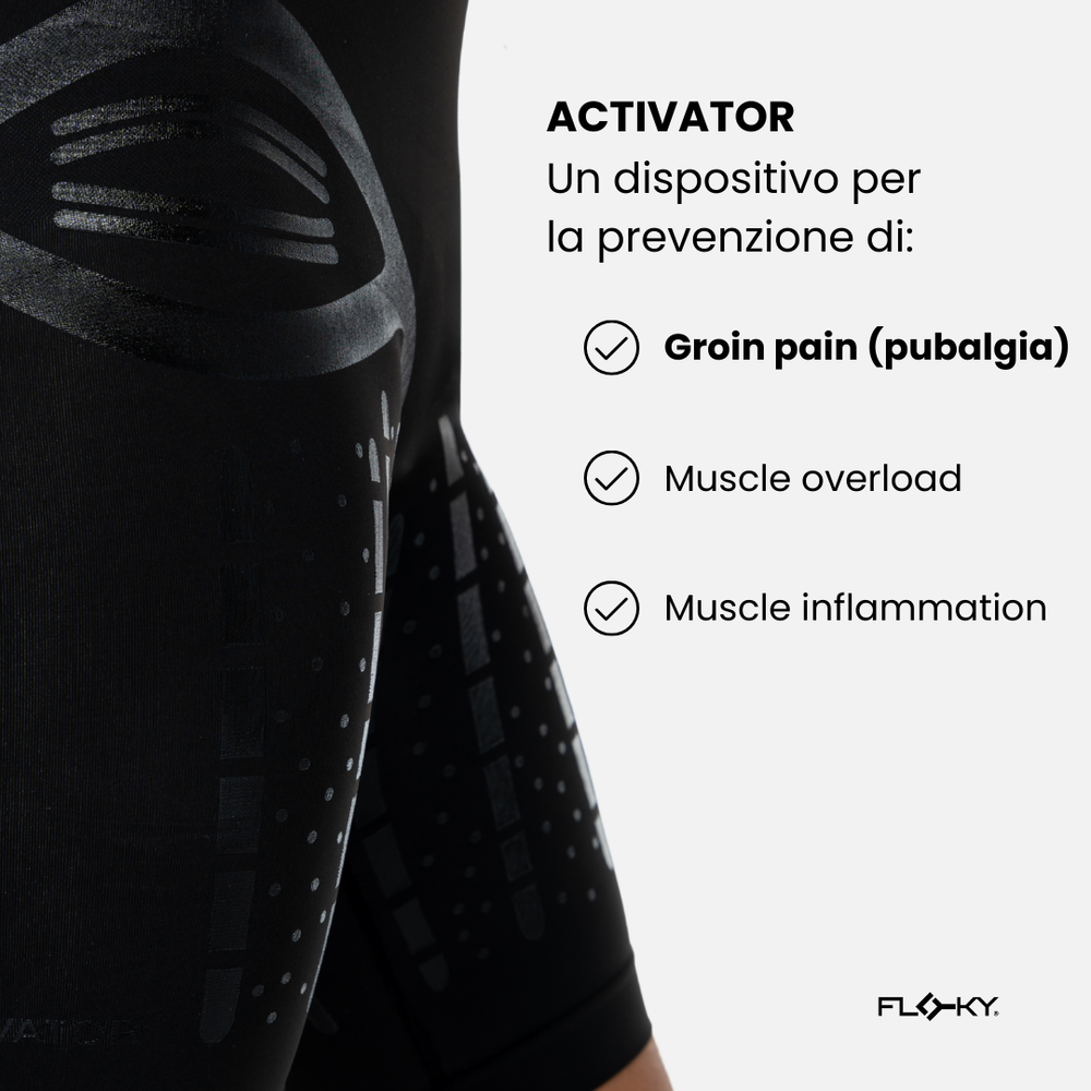 The ACTIVATOR shorts is the first biomechanical short designed to reduce vibration and improve muscle stability during sports activity, preventing issues such as pubalgia. With graduated compression and screen-printed applications, it supports leg muscles, activating muscles and protecting tendons and muscles from overload and inflammation.