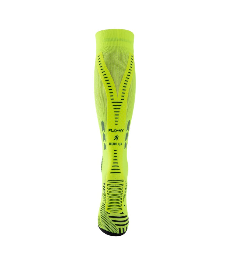 RUN UP LONG is the specific sock for running, designed by FLOKY to provide improved support of all biomechanical functions related to the foot and leg while allowing protection from injury and wear, speed of recovery, increased performance and environmental protection.
