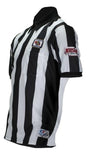 Description: An EXCLUSIVE Custom Sublimated shirt for Football officials in Nebraska. The Short Sleeve shirt features a special 2 1/4" stripe pattern with the wide black side panels, this shirt will look sharp on the field! No more patches - your NHSOA logo is actually dyed directly in the fabric, on the left sleeve, and the NSAA logo is seamlessly dyed into the shirt above the pocket. The American Flag with a white border is dyed directly into the fabric on the back of the shirt below the collar. Manufactured by Cliff Keen Athletic.