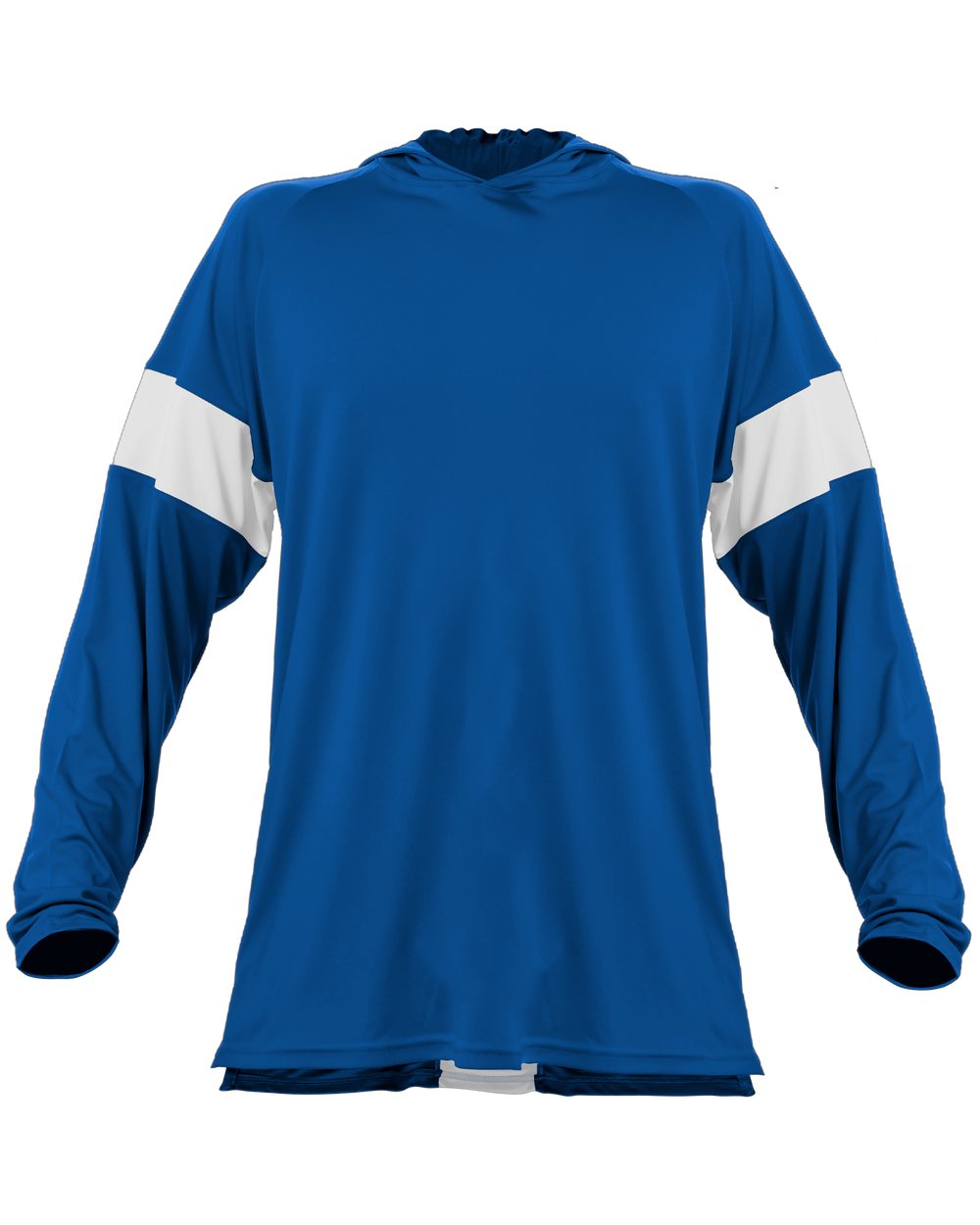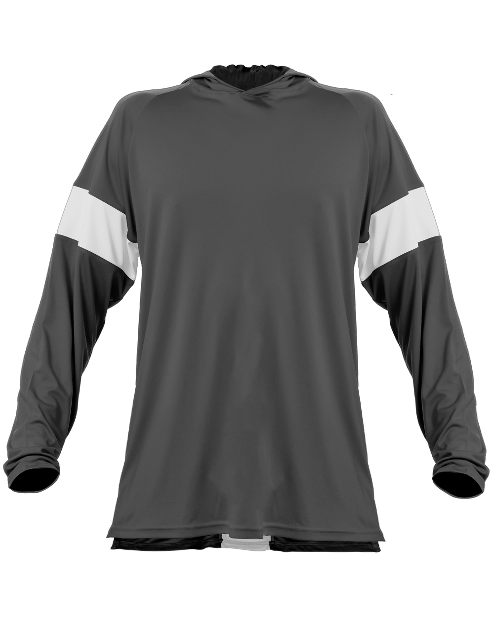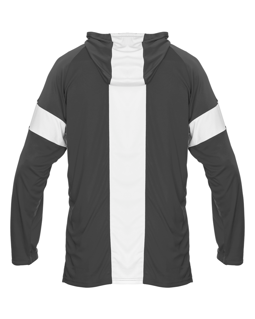 - Body color cross over neck hoodie with 4” contrast color inserts for decoration