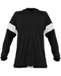 - Body color raglan long sleeves with 3” contrast color inserts on upper sleeve for decoration