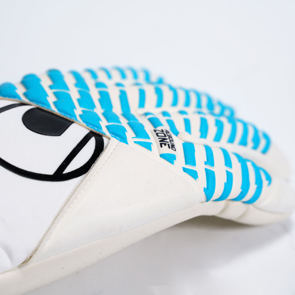 This innovative closure technology with a wing-like structure ensures gloves are fixed perfectly in place and gives the keeper maximum flexibility as well as stability. The ends of the tab closures, as well an additional tab on the cuff, make opening and closing the gloves easier so they are easier to put on.