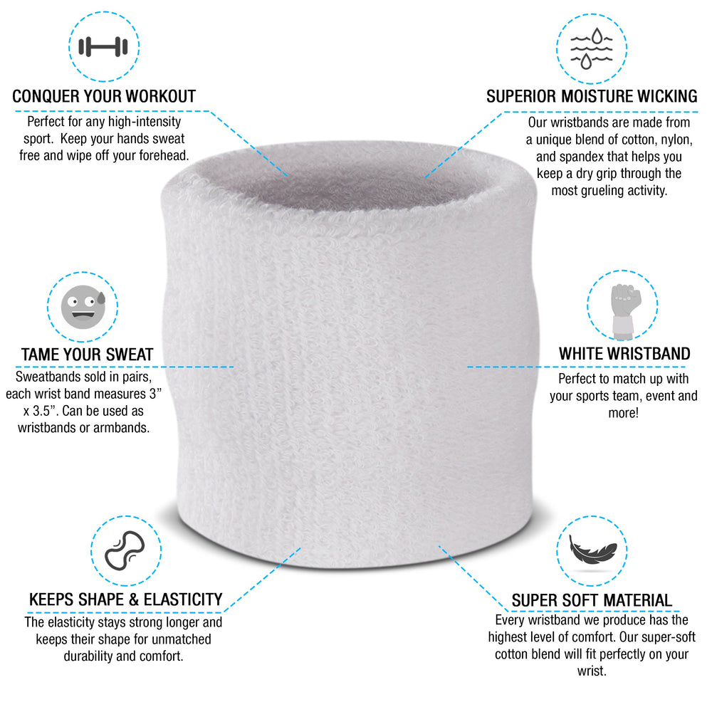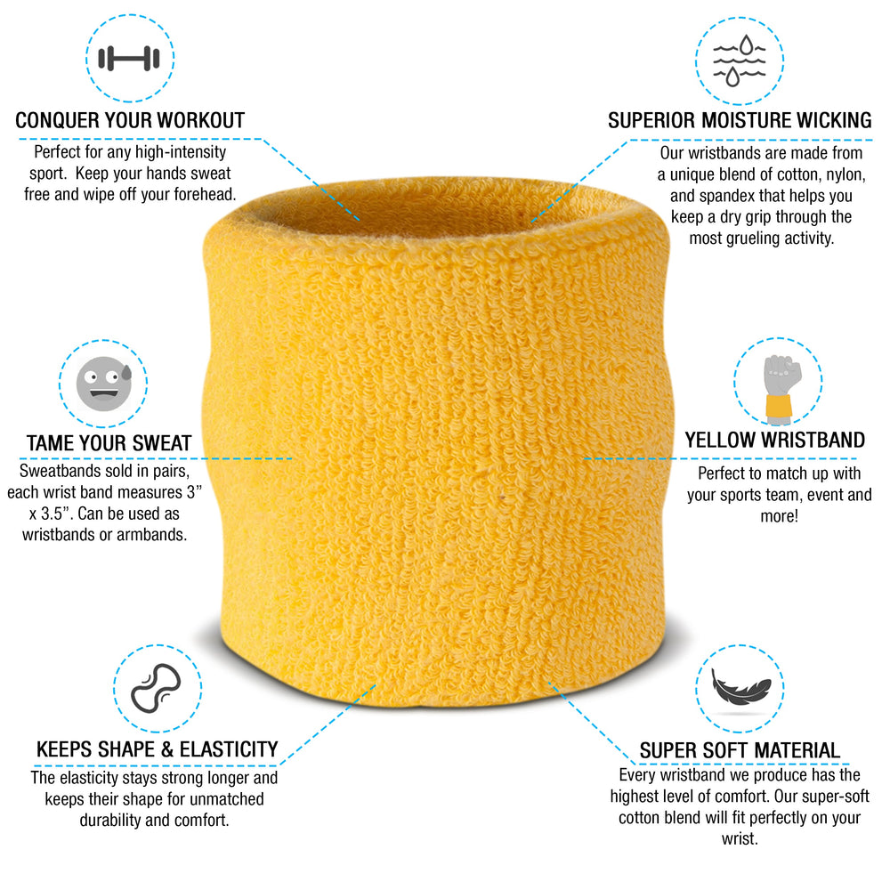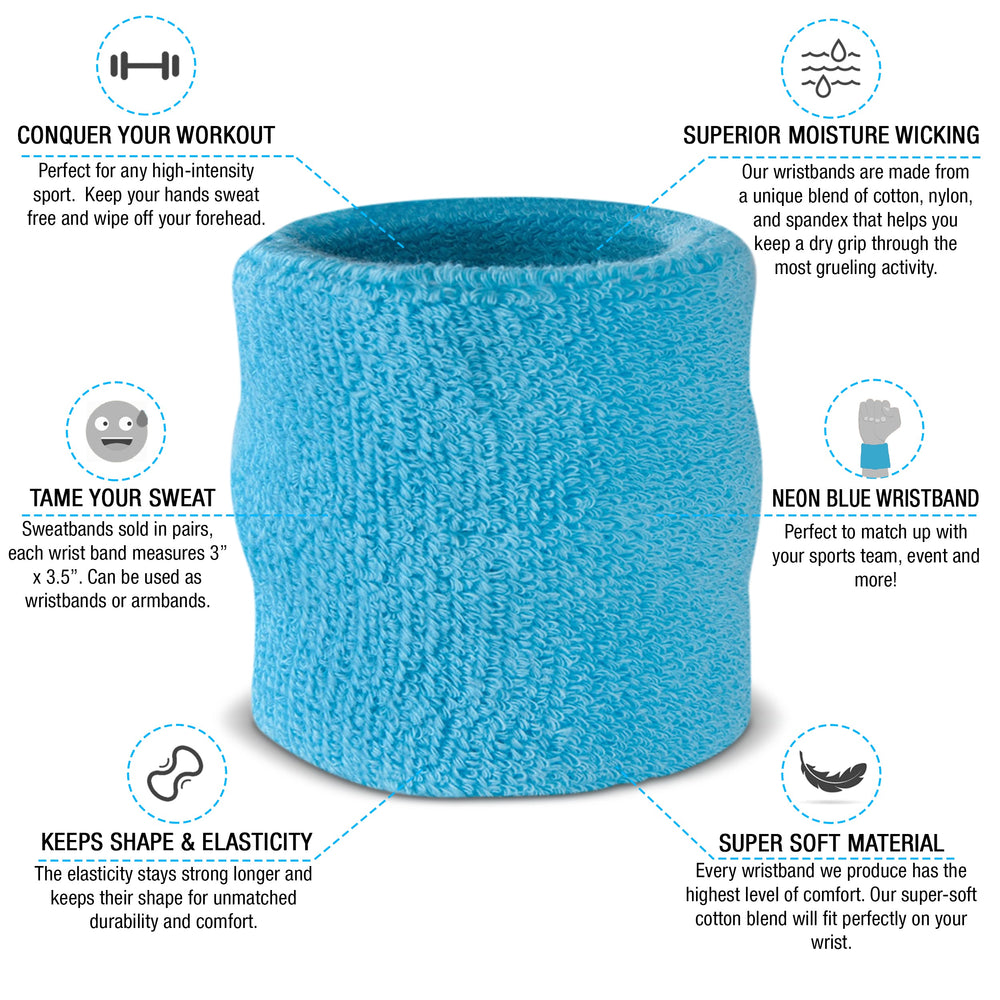 - Available in 12 Different Colors - This is one of the most popular sweatband sets we have to offer. The set comes with 1 headband and 2 wristbands. If you need to match these up with your jersey, don't sweat it. The sweatband set is available in black, white, blue, pink, orange, yellow, red, green, grey, purple, neons and more!
